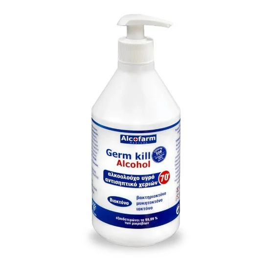 - Το Alcohol Germ Kill 70° είναι ένα ισχυρό αντισηπτικό και απολυμαντικό προϊόν με βάση την αιθυλική αλκοόλη (70% v/v), ειδικά σχεδιασμένο για την εξουδετέρωση ενός ευρέος φάσματος μικροβίων, συμπεριλαμβανομένων βακτηρίων, μυκήτων και ιών με περίβλημα.