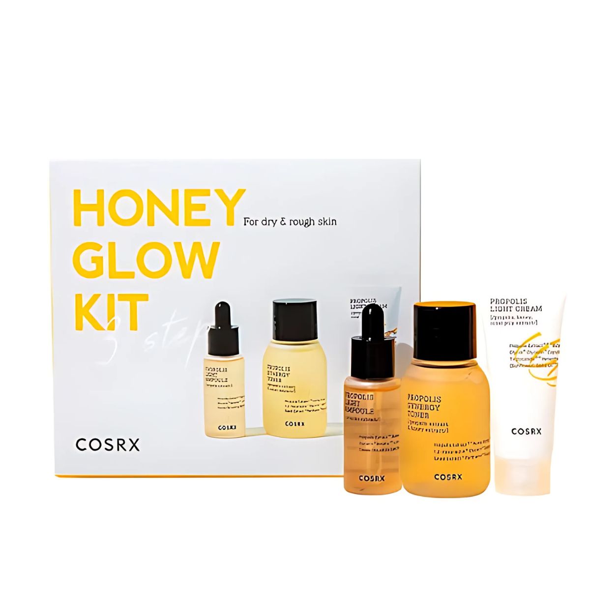 Το COSRX Honey Glow Kit είναι ένα ολοκληρωμένο σετ περιποίησης τριών βημάτων, βασισμένο στο Black Bee Propolis Complex, για άμεση θρέψη, βαθιά ενυδάτωση και φυσική λάμψη. Ιδανικό για ξηρές ή θαμπές επιδερμίδες, επαναφέρει τη ζωντάνια και την ελαστικότητα χωρίς να βαραίνει το δέρμα.