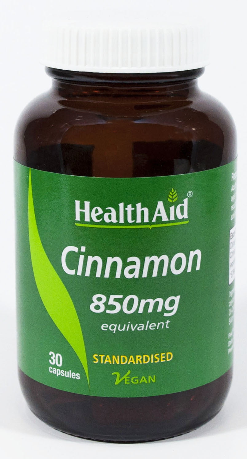 Το Cinnamon 850mg της HealthAid παράγεται από υψηλής ποιότητας τιτλοδοτημένο εκχύλισμα και σκόνη από