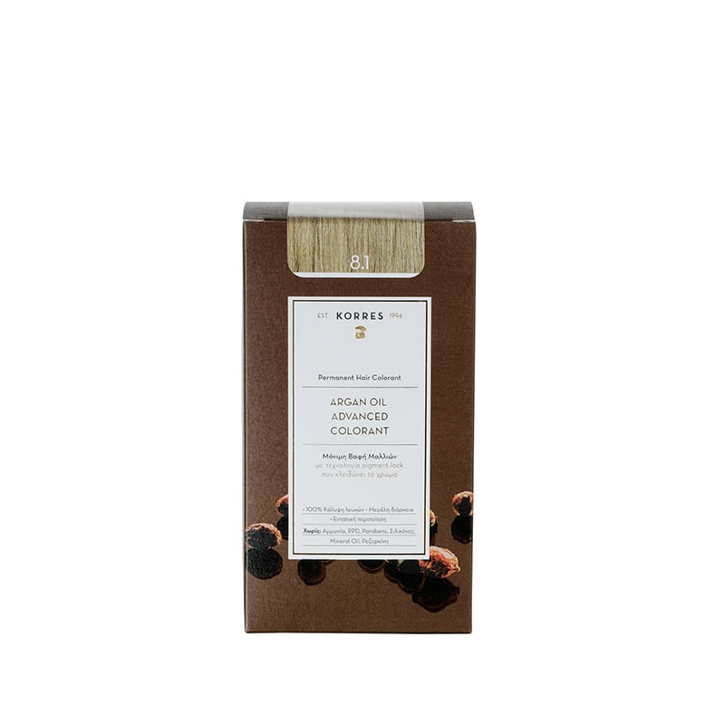 Μόνιμη βαφή μαλλιών με τεχνολογία pigment-lock που κλειδώνει το χρώμα χωρίς τη χρήση αμμωνίας. Προσφέρει 100% κάλυψη λευκών και γκρίζων μαλλιών, μεγάλη διάρκεια και λαμπερό χρώμα, ενώ ταυτόχρονα περιποιείται και προστατεύει την τρίχα από φθορά.ARGAN OIL ADVANCED COLORANT Aqua/Water/Eau, Laureth-2, Peg-4 Rapeseedamide, Trideceth-2 Carboxamide Mea, Ethanolamine, Oleth-30, Laureth-12, Glycerin, Cetearyl Alcohol, Toluene-2,5-Diamine Sulfate, Avena Sativa Kernel Extract/Avena Sativa (Oat) Kernel Extract, Cetearyl Phosphate, Sodium Cetearyl Sulfate, Polyquaternium-6, Sodium Sulfite, Ceteareth-20, Titanium Dioxide, Sodium Hydrosulfite, Tetrasodium Edta, Cetyl Hydroxyethylcellulose, Erythorbic Acid, Peg-8 Stearate, Ceteareth-25 Phosphate, Etidronic Acid, Argania Spinosa Kernel Oil, Hydrolyzed Soy Protein, Hydrolyzed Corn Protein, Hydrolyzed Wheat Protein, Parfum/Fragrance, Hexyl Cinnamal, m-Aminophenol, p-Methylaminophenol Sulfate, 4-Chlororesorcinol, Phenyl Methyl Pyrazolone. COLOUR DEVELOPING EMULSION 20 Vol Aqua/Water/Eau, Hydrogen Peroxide, Cetearyl Alcohol, Ceteareth-20, Cetyl Alcohol, Polyquaternium-6, Ceteareth-33, Oxyquinoline Sulfate, Etidronic Acid. SUNFLOWER & MOUNTAIN TEA CONDITIONER Aqua/Water/Eau, Cetearyl Alcohol, Distearoylethyl Hydroxyethylmonium Methosulfate, Dicaprylyl Carbonate, Quaternium-91, Parfum/Fragrance, Cetrimonium Methosulfate, Inulin, Astrocaryum Murumuru Seed Butter, Beta Vulgaris (Beet) Extract, Butylene Glycol, Caprylic/Capric Triglyceride, Crambe Abyssinica Seed Oil, Helianthus Annuus (Sunflower) Seed Extract, Hexyl Cinnamal, Hydrolyzed Wheat Protein, Hydrolyzed Wheat Starch, Hydroxyisohexyl 3-Cyclohexene Carboxaldehyde, Hydroxypropyl Guar, Lactic Acid, Linalool, Niacinamide, Orbignya Speciosa Kernel Oil, Origanum Dictamnus Flower/Leaf/Stem Extract, Origanum Majorana Leaf Extract, Panthenol, Phytantriol, Polyquaternium-37, Sideritis Syriaca Extract, Sodium Gluceptate.ΠΡΩΤΗ ΧΡΗΣΗ Αν βάφετε για πρώτη φορά τα μαλλιά σας. Αν δεν έχετε βάψει τα μαλλιά σας τους τελευταίους 3 μήνες ή περισσότερο. 1. Βάλτε μια πετσέτα πάνω από τους ώμους για την προστασία των ρούχων. Απλώστε κάποια λιπαρή κρέμα κοντά στο στεφάνι των μαλλιών, ώστε να μη βάψετε το δέρμα σας. Αφαιρέστε τα κοσμήματα και φορέστε τα γάντια που υπάρχουν στη συσκευασία. 2. Αδειάστε όλο το περιεχόμενο του σωληναρίου της βαφής των 50mL στην φιάλη του γαλακτώματος ενεργοποίησης χρώματος. 3. Κλείστε το καπάκι και ανακινήστε καλά το μίγμα για 2 λεπτά, μέχρι να γίνει ομοιογενές. 4. Μόλις το μίγμα είναι έτοιμο, αφαιρέστε ΑΜΕΣΩΣ όλο το καπάκι, στη συνέχεια ξεβιδώστε την άκρη του και ξαναβιδώστε το ανοικτό ρύγχος. Το προϊόν είναι αποτελεσματικό μόνο αν εφαρμοστεί αμέσως μετά την ανάμιξή του. Μην αποθηκεύετε το μίγμα μετά τη χρήση. 5. Εφαρμόστε το μίγμα από τις ρίζες προς τις άκρες, τμήμα-τμήμα, χρησιμοποιώντας την άκρη του απλικατέρ για να διαχωρίσετε τα μαλλιά. Βάλτε το υπόλοιπο προϊόν σε ολόκληρο το τριχωτό της κεφαλής και κάντε απαλό μασάζ. Το μίγμα δεν στάζει. 6. Αφήστε να δράσει για 35 λεπτά. 7. Κάντε μασάζ στα μαλλιά με λίγο χλιαρό νερό και ξεπλύνετε καλά μέχρι το νερό να τρέχει καθαρό. Στη συνέχεια λουστείτε με ένα απαλό σαμπουάν και ξεπλύνετε. 8. Εφαρμόστε την περιεχόμενη στη συσκευασία μαλακτική κρέμα σταθεροποίησης χρώματος Ηλίανθος και Τσάι του Βουνού για βαμμένα μαλλιά. Κάντε μασάζ προσεκτικά για να εξασφαλιστεί η σωστή απορρόφηση των συστατικών. 9. Αφήστε να δράσει για 1-2 λεπτά και ξεπλύνετε. ΕΠΑΝΑΛΗΠΤΙΚΗ ΧΡΗΣΗ Όταν τα µαλλιά µακρύνουν και χρειαστεί να ξαναβάψετε τις ρίζες. 1. Ακολουθήστε τις οδηγίες από το βήµα 1 ως το βήµα 4. 2. Εφαρμόστε το μίγμα ΜΟΝΟ στις ρίζες χρησιμοποιώντας την άκρη του απλικατέρ για το διαχωρισμό των μαλλιών. 3. Αφήστε να δράσει για 25 λεπτά. 4. Εφαρμόστε το υπόλοιπο μίγμα στο μήκος των μαλλιών, κάντε απαλό μασάζ και αφήστε να δράσει για άλλα 10 λεπτά. 5. Τελειώστε ακολουθώντας τις οδηγίες από το βήμα 7 έως 9. ΣΗΜΑΝΤΙΚΟ – Σε περίπτωση που τα γκρίζα μαλλιά είναι ιδιαίτερα ανθεκτικά, αφήστε τη βαφή επιπλέον 5 λεπτά για πλήρη κάλυψη των γκρίζων. – Αν το χρώμα στο υπόλοιπο της τρίχας δεν έχει ξεθωριάσει, εφαρμόσ
