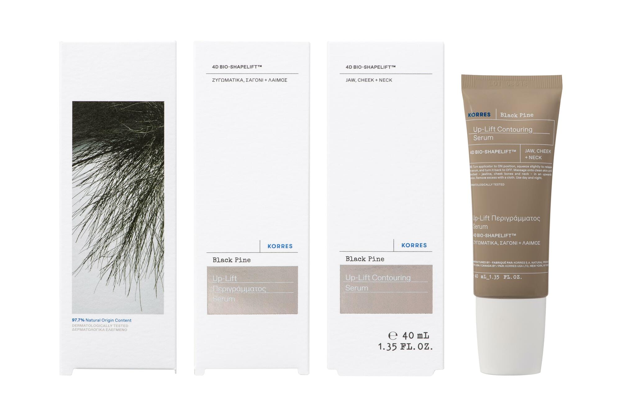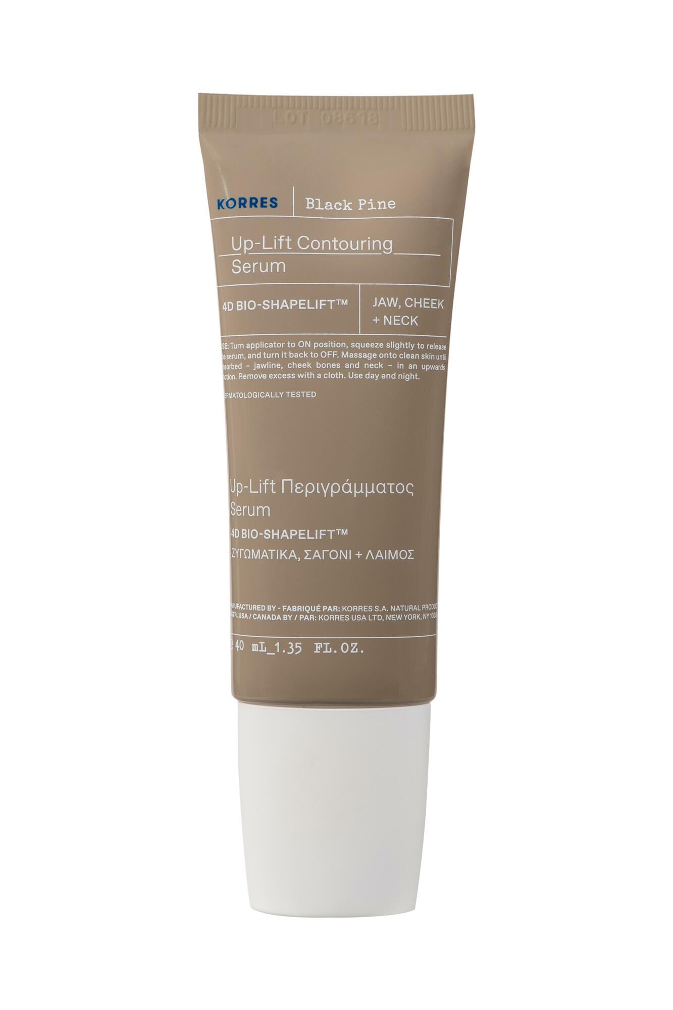 To Korres Μαύρη Πεύκη Up-Lift Serum, είναι ένας εξειδικευμένος ορός με καινοτόμο ρόλερ μασάζ για άμεση δράση σύσφιξης, ανόρθωσης περιγράμματος και ορατό lifting σε σαγόνι, ζυγωματικά και λαιμό, που επαναφέρει την αρχιτεκτονική του προσώπου.