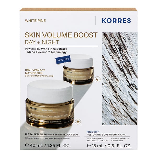 Υπερ-ενισχυμένη κρέμα ημέρας με τεχνολογία Meno-Reverse™ και εκχύλισμα Λευκής Πεύκης που έχει στοχευμένη δράση αναπλήρωσης όγκου και πυκνότητας.